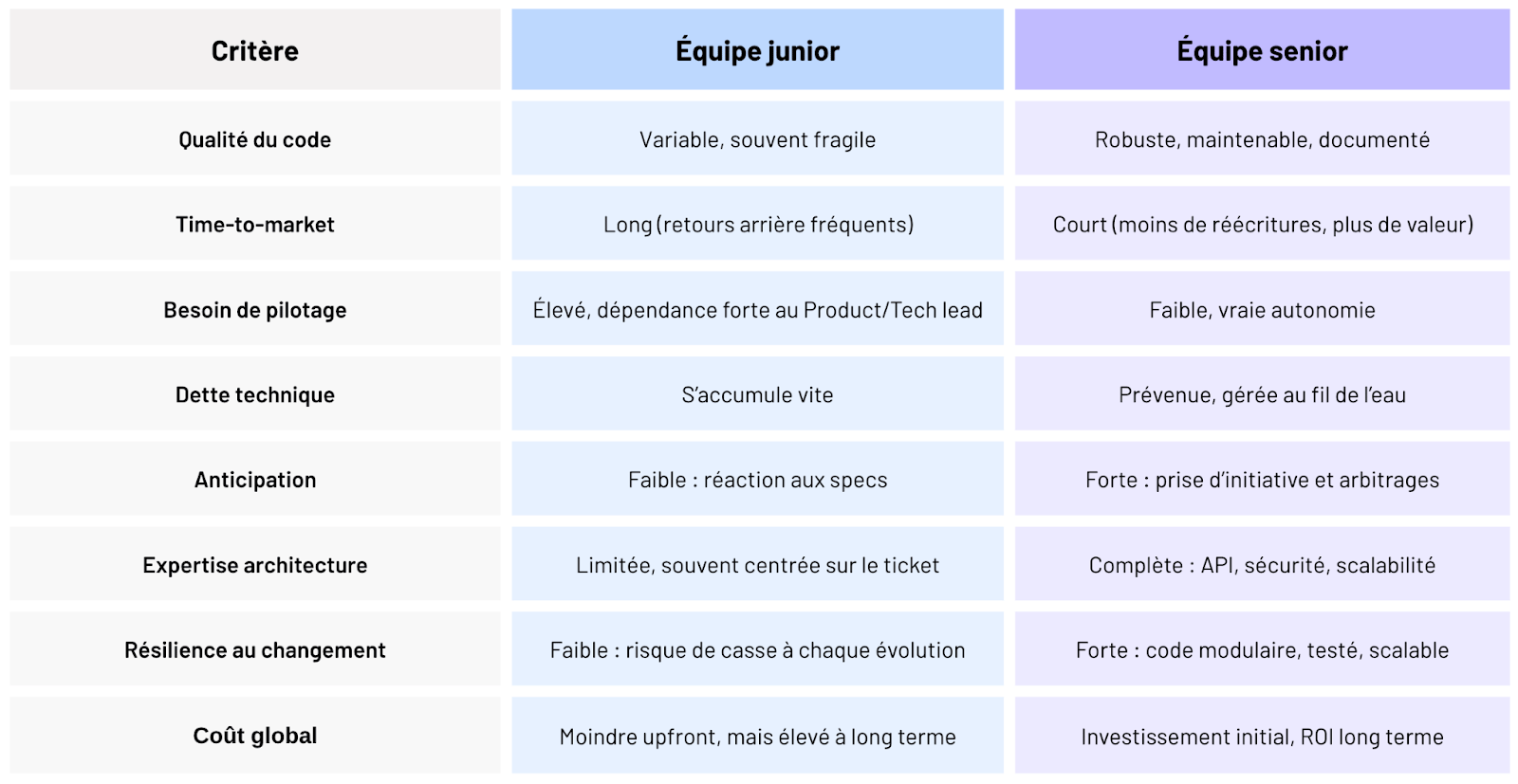 Sans une équipe senior capable d’architecturer proprement, le produit devient vite ingérable.